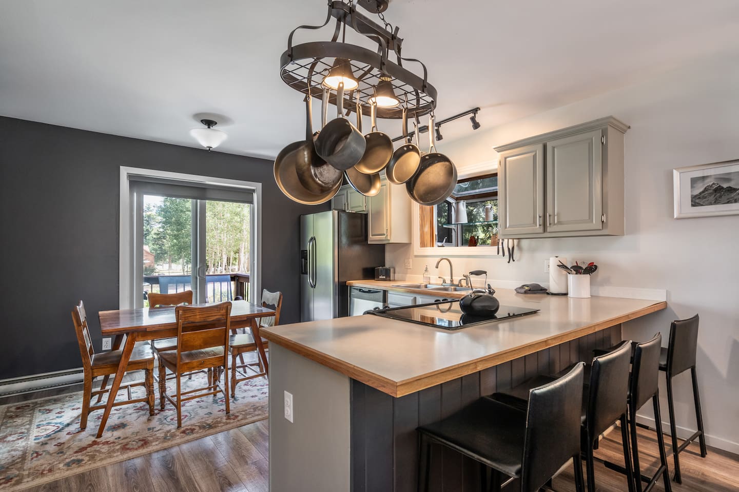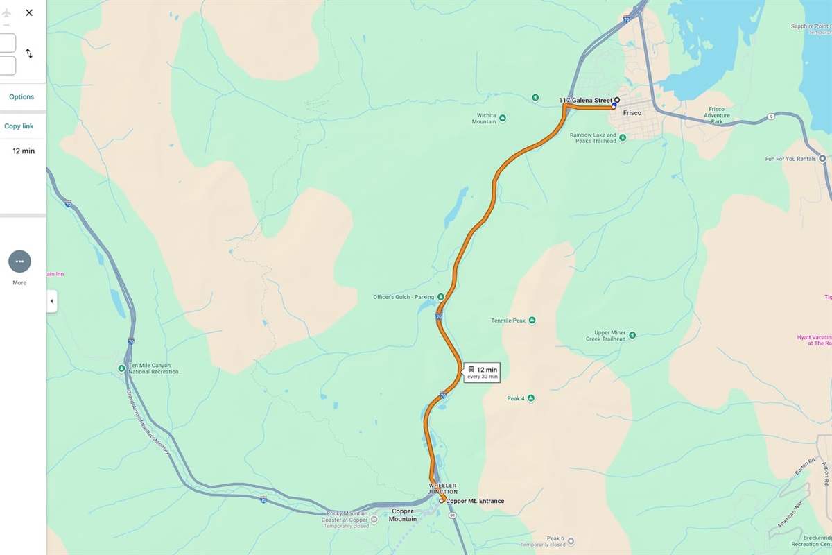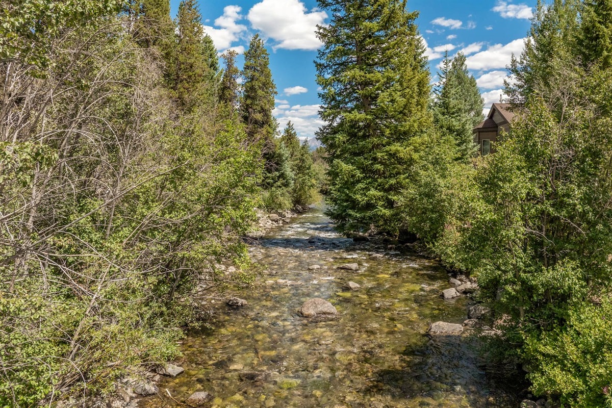 Downtown Frisco home on the 10 Mile Creek offers the best of both worlds. We have the convenience of being walking distance to this very dog friendly town, yet, set on the 10 Mile Creek, and surrounded by gorgeous tall Aspens, Blue Spruce, and Mountain Views. Fall asleep to the sound of the river flowing into Lake Dillon. For skiers, Copper Mountain is a 6.6-mile drive or 3 min walk to the bus that runs every half hour and is about a 12 min ride. You can also easily explore nearby Breckenridge, Keystone and Arapahoe Basin. Parking and access are a breeze considering the house is at ground level steps from the driveway.